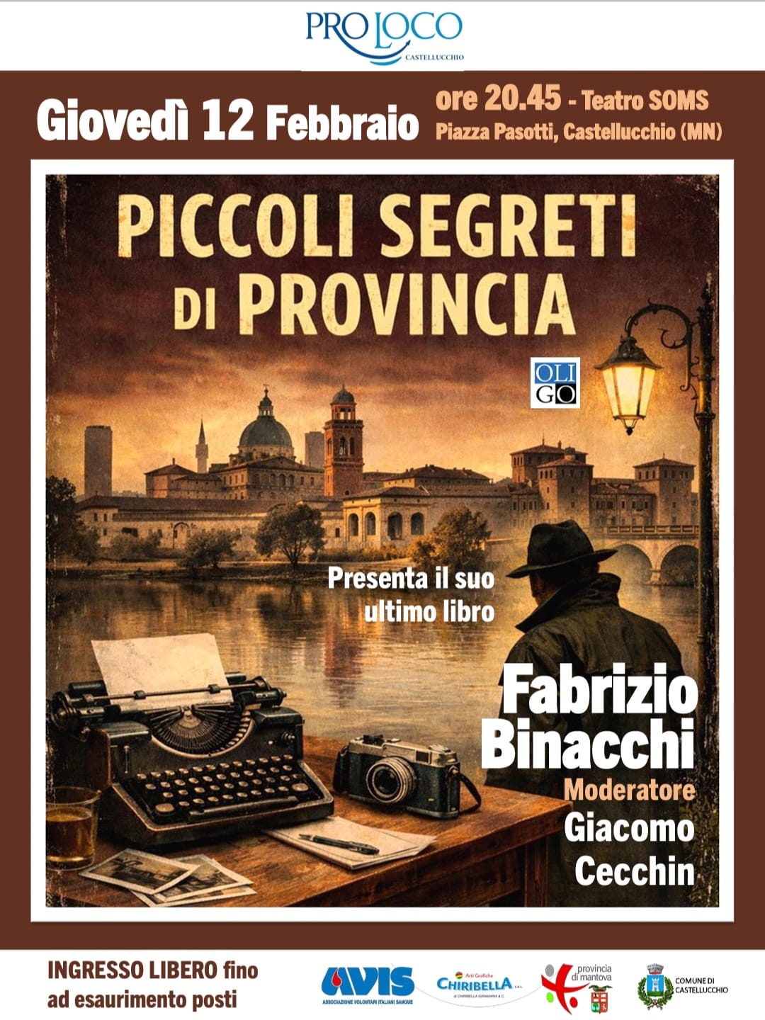 Bassa mantovana, Castellucchio, cultura mantovana, eventi culturali Mantova, Fabrizio Binacchi, Giacomo Cecchin, giornalismo italiano, libri Mantovani, Mantova, memoria collettiva, Oligo editore, Piccoli segreti di provincia, presentazione libro, Storia Locale, tradizioni locali