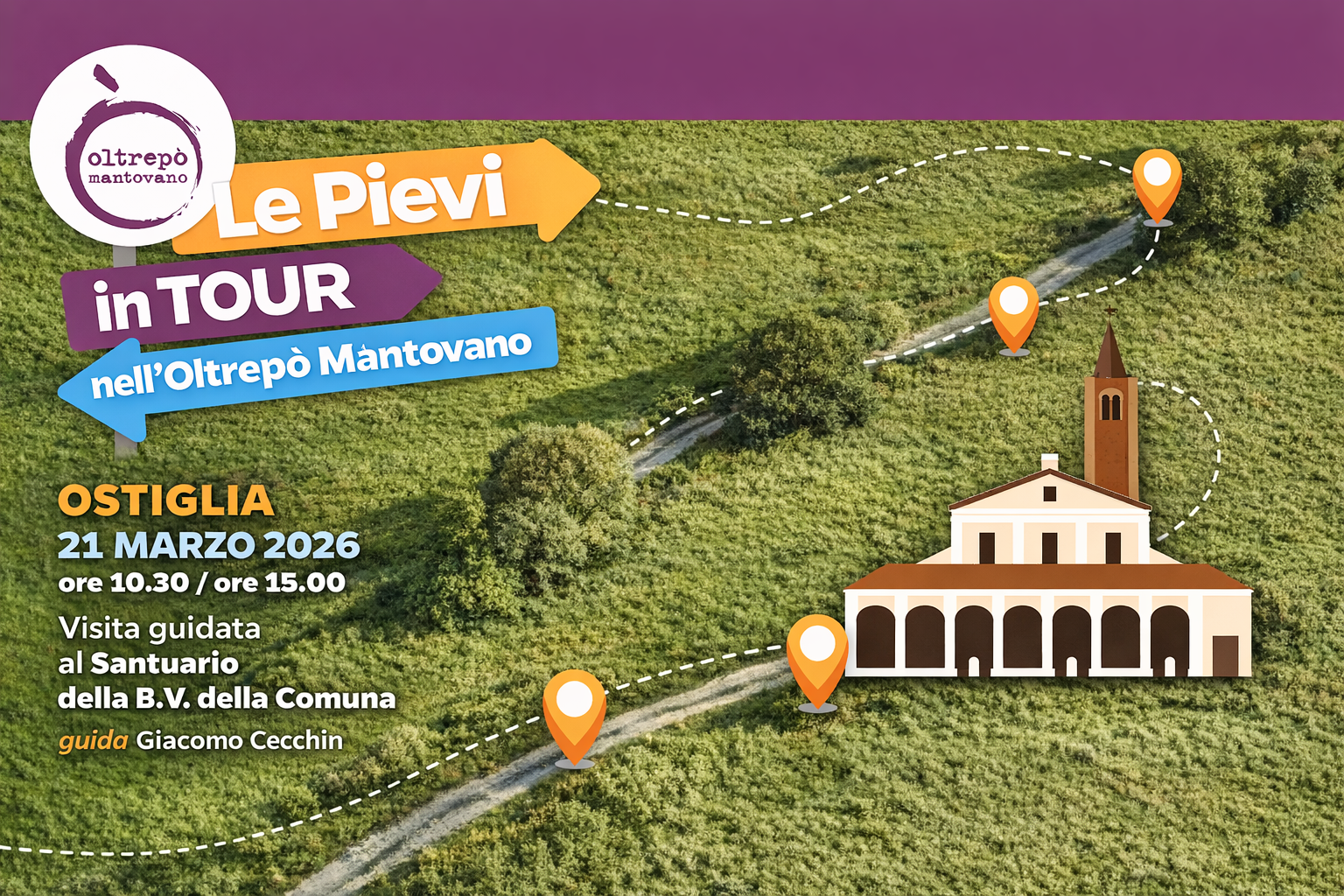 Ecco di nuovo l’Oltrepò Mantovano in tournée per un territorio davvero ricco di cultura, sorprese e meraviglie. La prima tappa a Ostiglia mi vedrà presente per una visita guidata al santuario della Comuna. Vi aspettiamo quindi a: