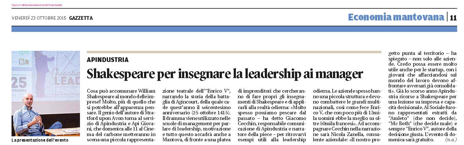 E allora godetevi il racconto, lavorate sulle forze della vostra immaginazione come dice Will Shakespeare ed entrate a far parte di quella schiera di “pochi, felici pochi, banda di fratelli” che non avrebbe voluto essere da nessuna altra parte se non sul campo di battaglia con Enrico V.