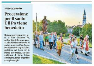 L’articolo pubblicato su Gazzetta di Mantova di giovedì 26 luglio sulla processione a San Giacomo Po.