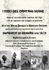 5 settimane in pallone, Cinema del Carbone, Elena Benazzi, Giacomo Cecchin, Giulio Verne, I figli del Capitano Verne, Il giro del mondo in 80 giorni, Jules Verne, Leggi e sogna, Mantova, Michele Strogoff, Ventimila leghe sotto i mari, Viaggio al centro della terra