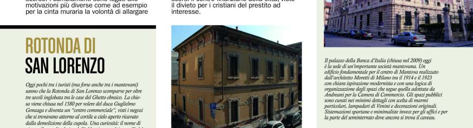 5 luoghi finanziari, Banca d'Italia a Mantova, Camera di Commercio, Consorzio di bonifica Terre dei Gonzaga in destra Po, Ghetto ebraico, Giacomo Cecchin, Mantova era una Manhattan padana, MantovaChiamaGarda, Mantovagando, Monte di Pietà, Rotonda di San Lorenzo