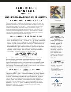 Federico I Gonzaga è una meteora tra i marchesi di Mantova. Rimarrà al potere per soli 6 anni dal 1478 al 1484 ma anche in questi pochi anni lascia un segno commissionando a Luca Fancelli la Domus Nova, la cui facciata si può ammirare anche oggi dal giardino dei Semplici. Federico si trova anche ad affrontare una divisione del marchesato con i suoi fratelli cadetti voluta dalla madre Barbara, visto che il testamento del padre Ludovico non si trova. E’ gobbo e sposerà una gobba come lui, Margherita di Wittelsbach che morirà a soli 39 dandogli però ben sei figli. I tre maschi seguono la tradizione di famiglia: il primo è l’erede, il secondo è cardinale e il terzo soldato. Le femmine invece faranno matrimoni importanti imparentando i Gonzaga con la nobiltà di Francia, gli Sforza e i Montefeltro.