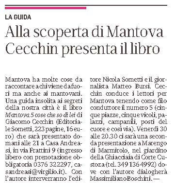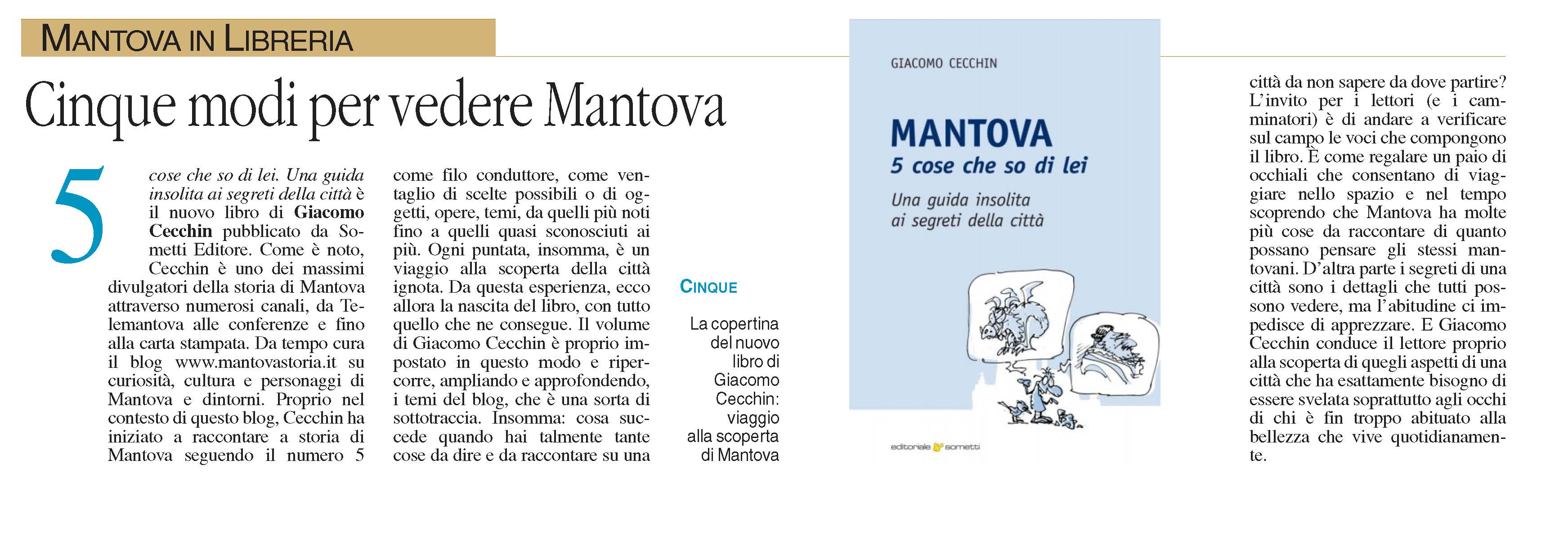 Esce finalmente il primo libro su Mantova di Giacomo Cecchin. E’ una lettura da non perdere per chi si è appassionato alla rubrica “le 5 cose”.