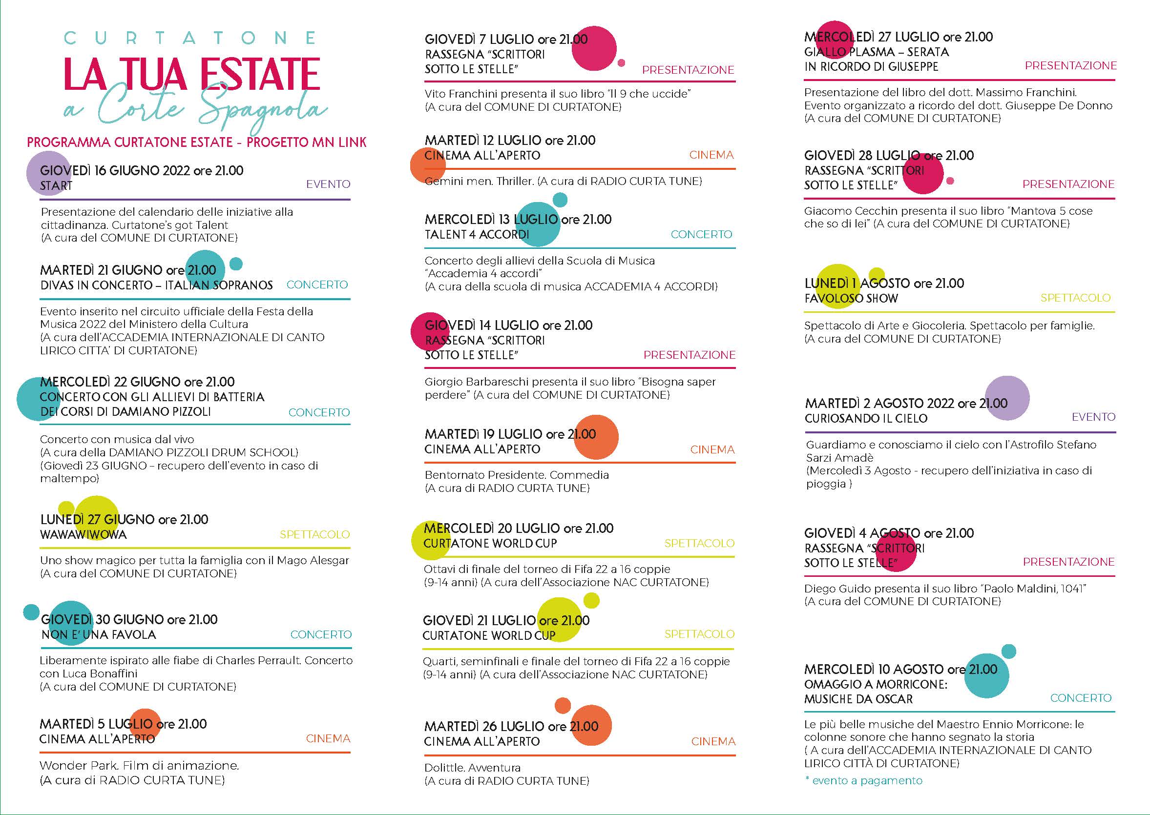 La presentazione è inserita nella manifestazione CURTATONE, LA TUA ESTATE A CORTE SPAGNOLA, rassegna estiva di incontri, concerti, cinema e spettacoli promossi dalla Città di Curtatone.