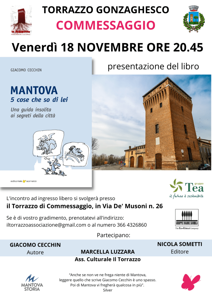 Associazione culturale IL TORRAZZO, Commessaggio, Editoriale Sometti, Giacomo Cecchin, libro Mantova 5 cose che so di lei, libro su Mantova di Giacomo Cecchin, Mantova, Mantova 5 cose che so di lei, Marcella Luzzara, Nicola Sometti, Torrazzo, Torrazzo di Commessaggio, tournée, Vespasiano Gonzaga