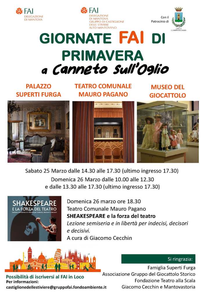 Canneto sull'Oglio, Fai Gruppo di Castiglione delle Stiviere e Alto Mantovano, Giacomo Cecchin, Giornate Fai di primavera 2023, Museo del Giocattolo, Palazzo Superti Furga, Teatro comunale Mauro Pagano