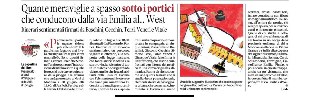Sono davvero contento di aver partecipato all’avventura del libro “La Pianura dei Portici” edito da Sometti e scritto in compagnia di Fabio Veneri (anche capocomico in questa occasione), Massimiliano Boschini, Simone Terzi e illustrato da Giuseppe Vitale.