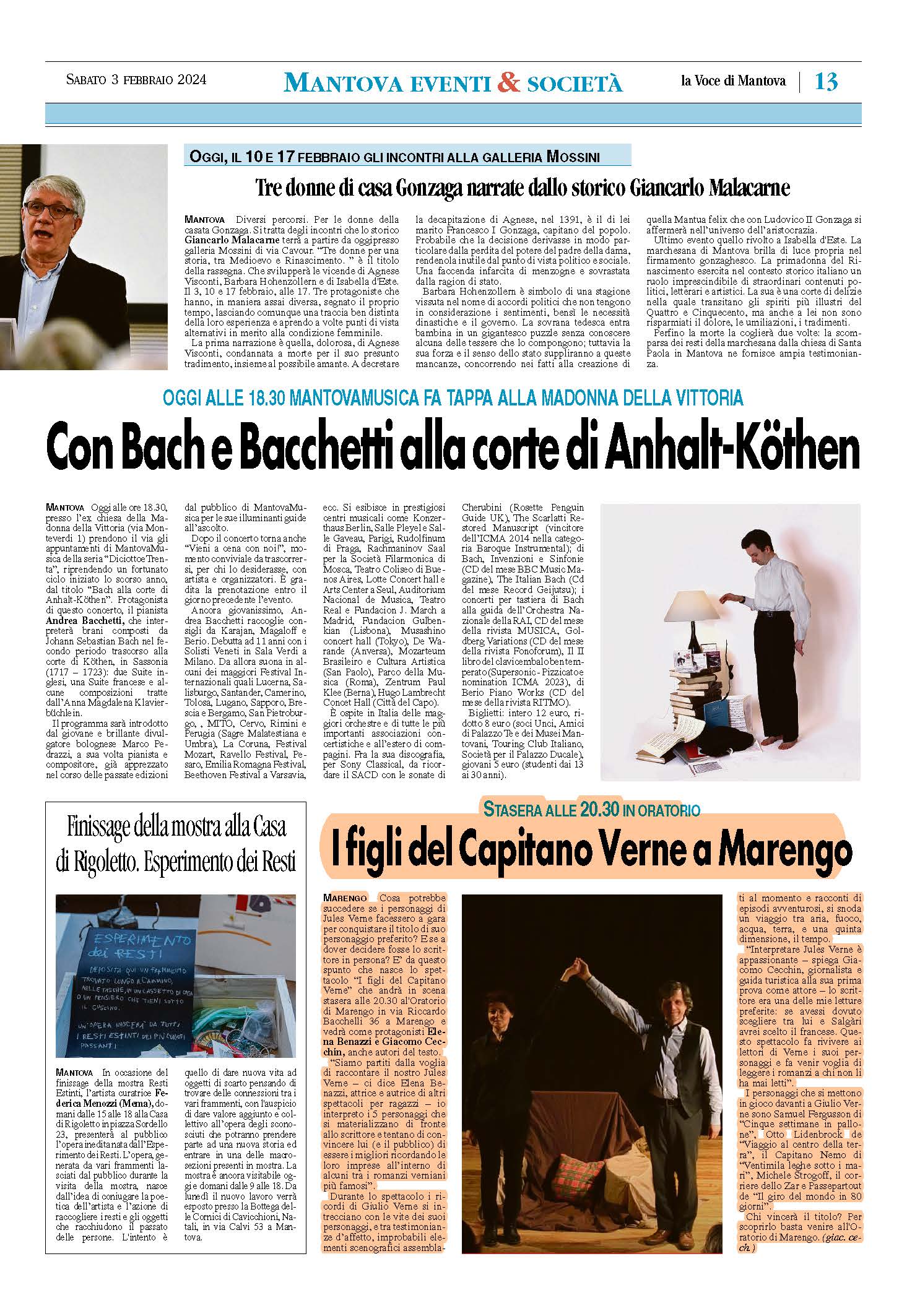 La Rassegna stampa sullo spettacolo dai quotidiani mantovani (sabato 3 febbraio 2024)