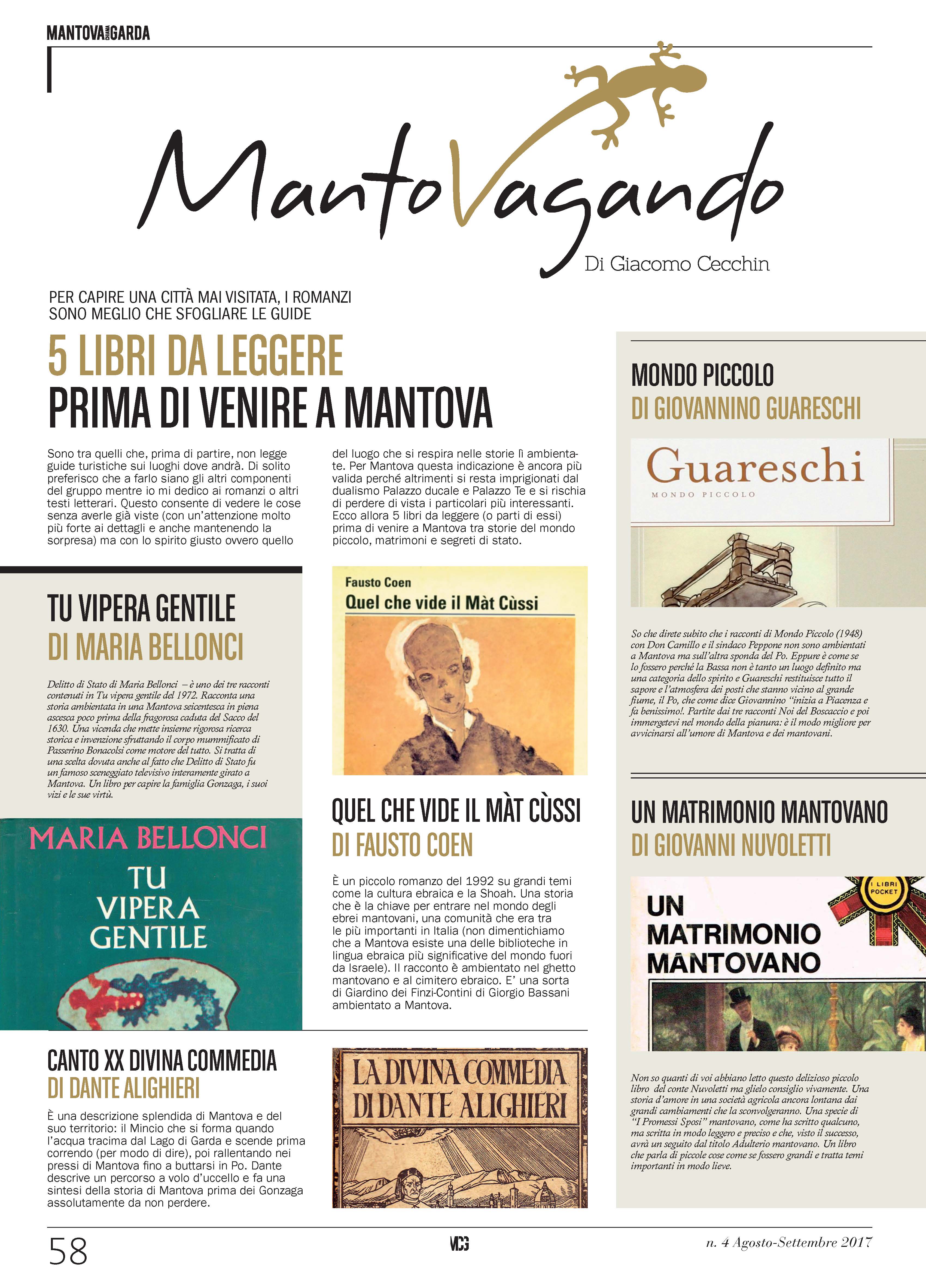 5 libri da leggere prima di venire a Mantova, Dante Alighieri, Divina Commedia, Fausto Coen, Giacomo Cecchin, Giovanni Nuvoletti, Giovannino Guareschi, Maria Bellonci, MCG, MCG Mantova Chiama Garda, Mondo Piccolo, Quel che vide il màt cussi, Tu vipera gentile, Un matrimonio mantovano, XX canto dell'Inferno
