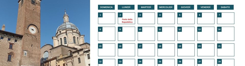 Calendario, calendario 2025, Cupolone di Sant'Andrea, Giacomo Cecchin, Giovanna Caleffi, giugno 2025, Mantovastoria, Torre Comunale