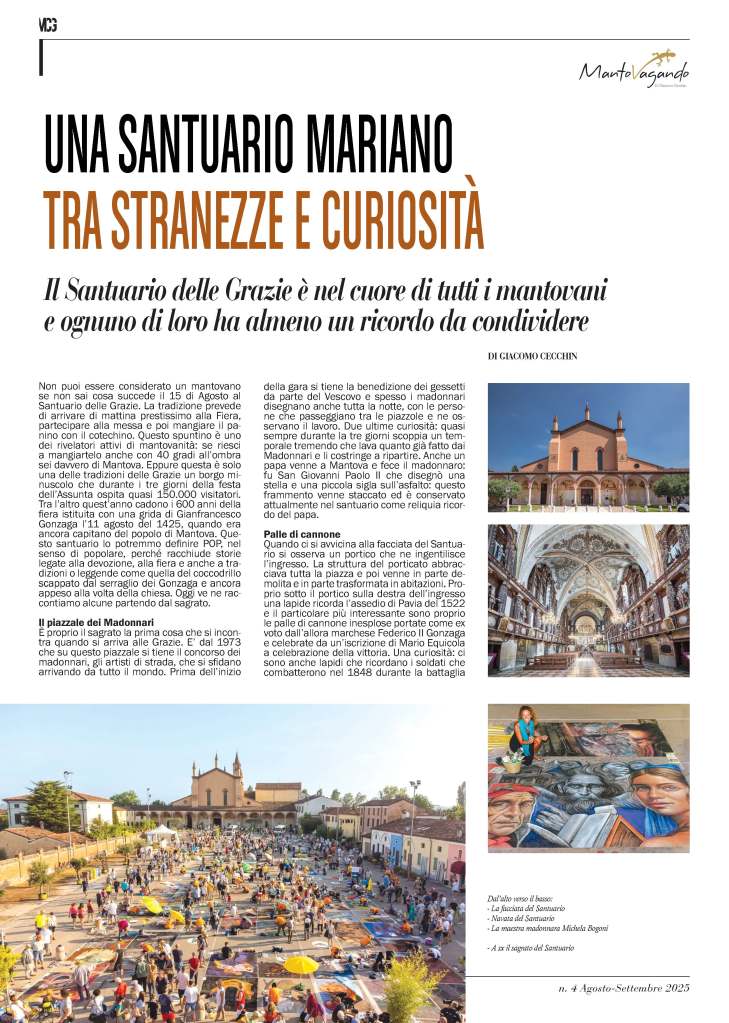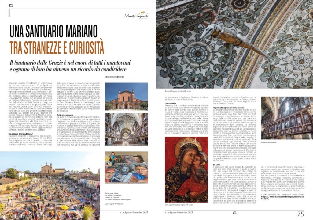 Quest’anno cadono i 600 anni della Fiera delle Grazie e quindi ho pensato di dedicare un articolo a questo santuario mariano che è davvero unico al mondo. Ecco alcune stranezze e curiosità che ho concentrato in questa doppia pagina pubblicata su MCG – Mantova Chiama Garda.
