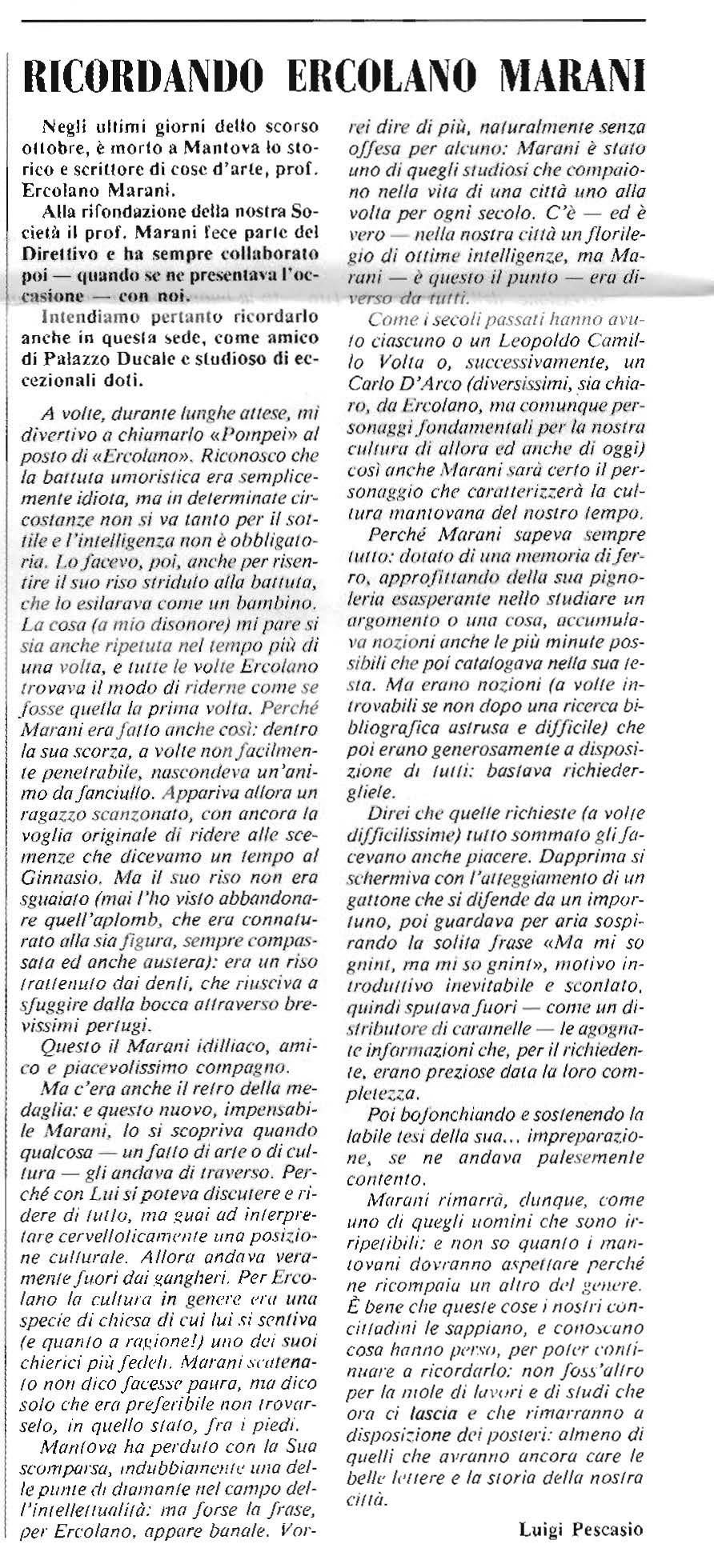 RICORDANDO ERCOLANO MARANI di Luigi Pescasio (da La Reggia Giornale de La Società per il Palazzo Ducale anno II. n. 5 dicembre 1994 – questo il link al numero intero)