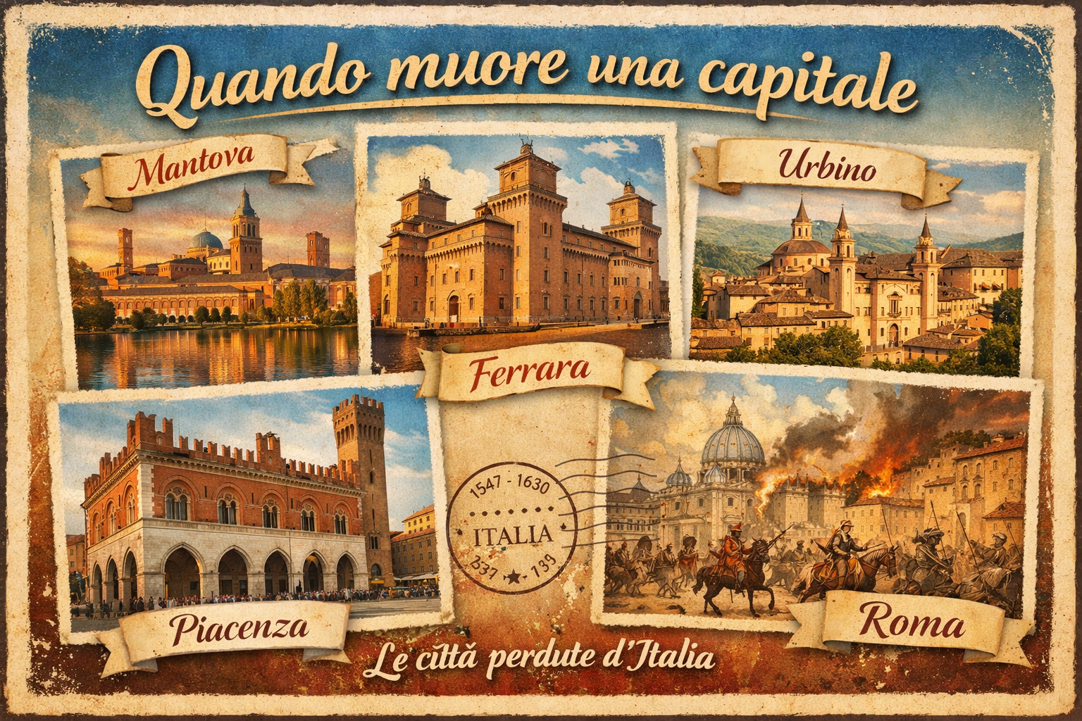 capitales perdues, capitali perdute, città rinascimentali, città storiche italiane, déclin urbain, decadenza urbana, Ferrara 1598, Ferrara Renaissance, Ferrara Rinascimento, Ferrare Renaissance, histoire urbaine italienne, historic Italian cities, Italian Renaissance, Italian urban history, lost capitals, Mantoue histoire, Mantova storia, Mantua history, Piacenza 1547, Piacenza history, Piacenza storia, Plaisance histoire, Renaissance italienne, Rinascimento italiano, Sacco di Mantova 1630, storia urbana italiana, Urbino 1637, Urbino capitale, Urbino history, villes de la Renaissance, villes historiques italiennes