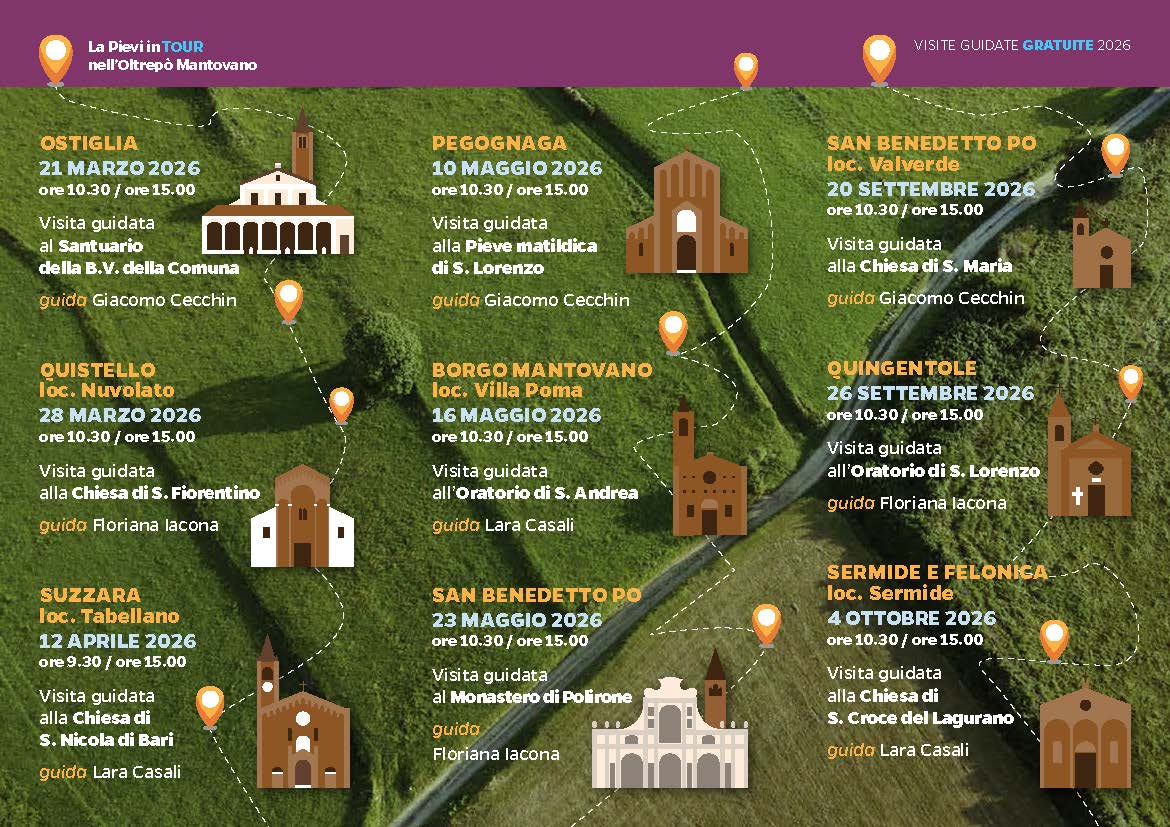 Ecco il calendario completo delle visite previste in giro per il territorio dell’Oltrepò Mantovano.