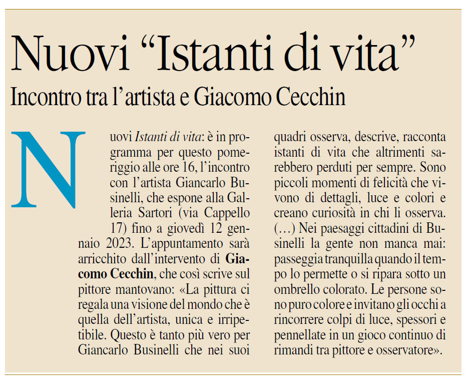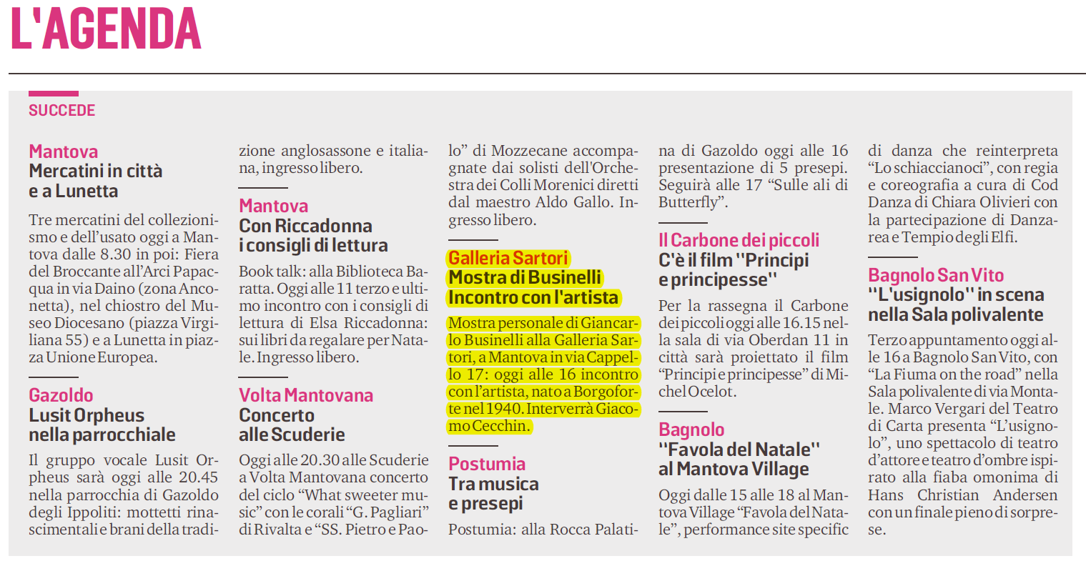 Una nuova e bellissima mostra di Giancarlo Businelli presso la Galleria Arianna Sartori in via Cappello 17 a Mantova.