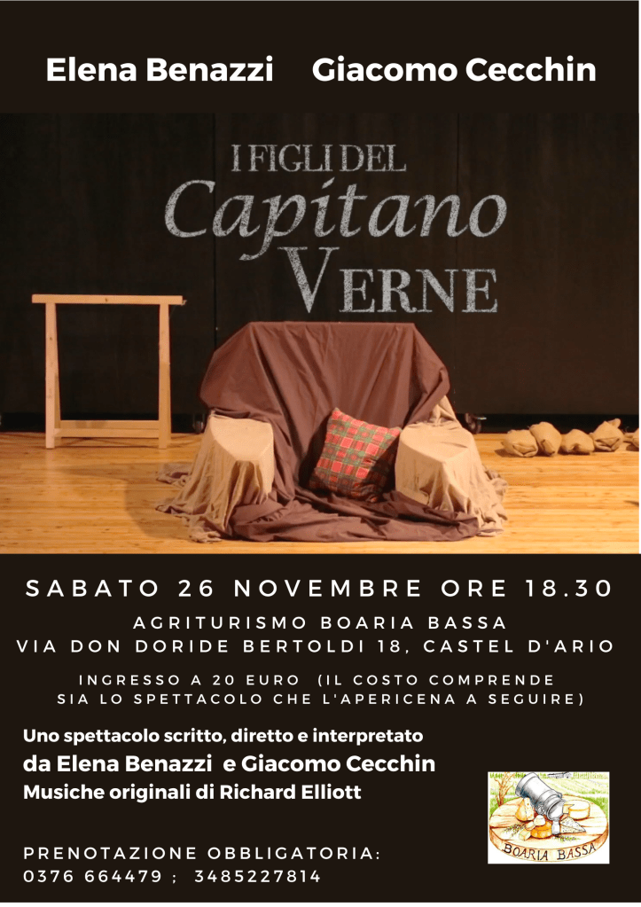 “I figli del Capitano Verne”: sabato 26 novembre alle 18.30 spettacolo+apericena alla Boaria Bassa di Castel D’Ario