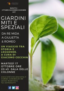 Vi aspetto per una conversazione sui giardini dipinti di Palazzo Ducale (e sono almeno 5), sui miti che derivano dalle piante (e ne ho scelti 5) e sugli speziali o farmacisti che si incontrano nella storia di Mantova (e provate a indovinare quanti sono…).