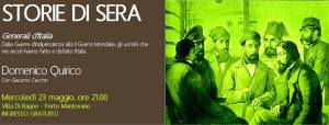 Torniamo a Villa Di Bagno con altre storie da raccontare e con il giornalista Domenico Quirico che racconterà dei generali che fecero (pochi) e disfecero (molti) l’Italia.